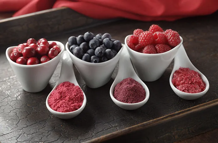 In the drum-drying process, puréed raw ingredients are dried over two rotating, high-capacity drums and undergo a validated kill step. Sheets of drum-dried product are milled to a finished flake or powder form. Drum-dried ingredients reconstitute immediately and retain their flavor, color and nutritional value.